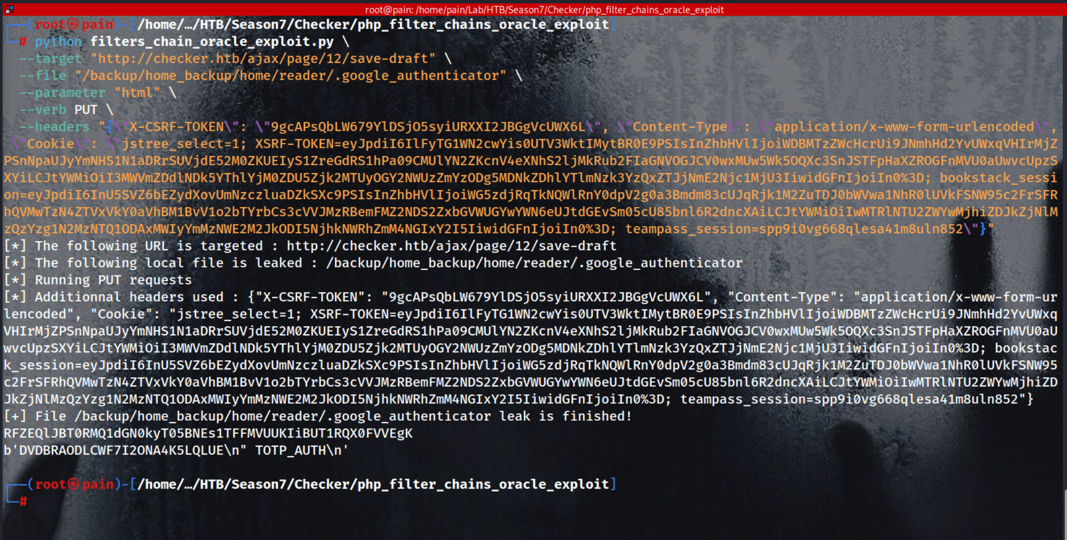 The Checker machine from Hack The Box, a hard-rated Linux challenge, required a combination of web exploitation, credential analysis, and binary exploitation to achieve root access. Initial enumeration revealed two open ports: 80 (BookStack) and 8080 (TeamPass CMS). Exploiting an SQL Injection vulnerability in TeamPass allowed the extraction of user password hashes, one of which was successfully cracked. These credentials provided access to both BookStack and SSH. Further enumeration in BookStack led to the discovery of CVE-2023-6199, which exposed the Google Authentication secret, enabling the generation of a valid OTP for SSH login. Once inside, a SUID script and a vulnerable binary (check_leak) were identified. Reverse engineering in Ghidra revealed a race condition, weak cryptographic algorithm, and command injection vulnerability. Crafting a custom C exploit successfully escalated privileges to root. The machine tested a variety of security skills, including web exploitation, authentication bypass, and advanced binary exploitation, making it a well-rounded challenge.