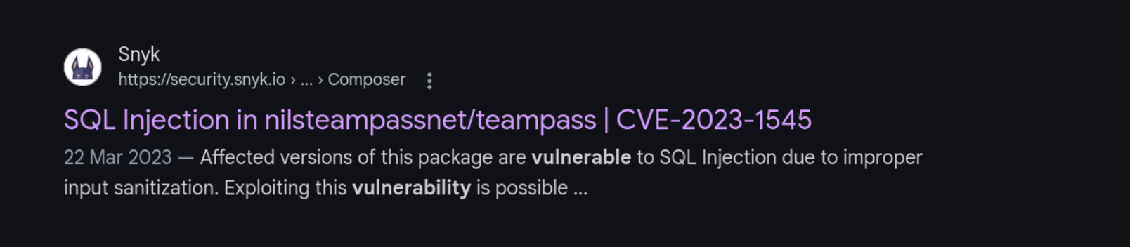 | [Snyk Vulnerability Database | Snyk](https://security.snyk.io/vuln/SNYK-PHP-NILSTEAMPASSNETTEAMPASS-3367612) |